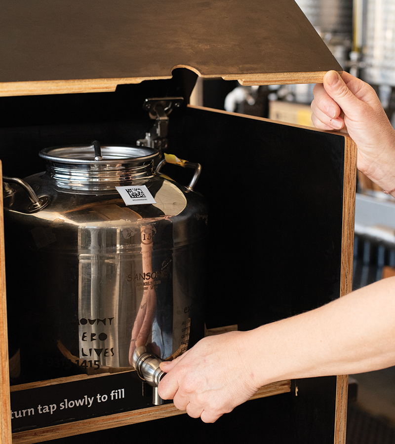 Each dispenser houses a removable 15-litre food-grade, airtight stainless steel tank that we fill with extra virgin olive oil straight from our tanks. These tanks are an extension of a swap-and-go alternative that we have used with our food service customers across Melbourne for close to 2 years now, in an effort to cut down on unnecessary packaging waste.