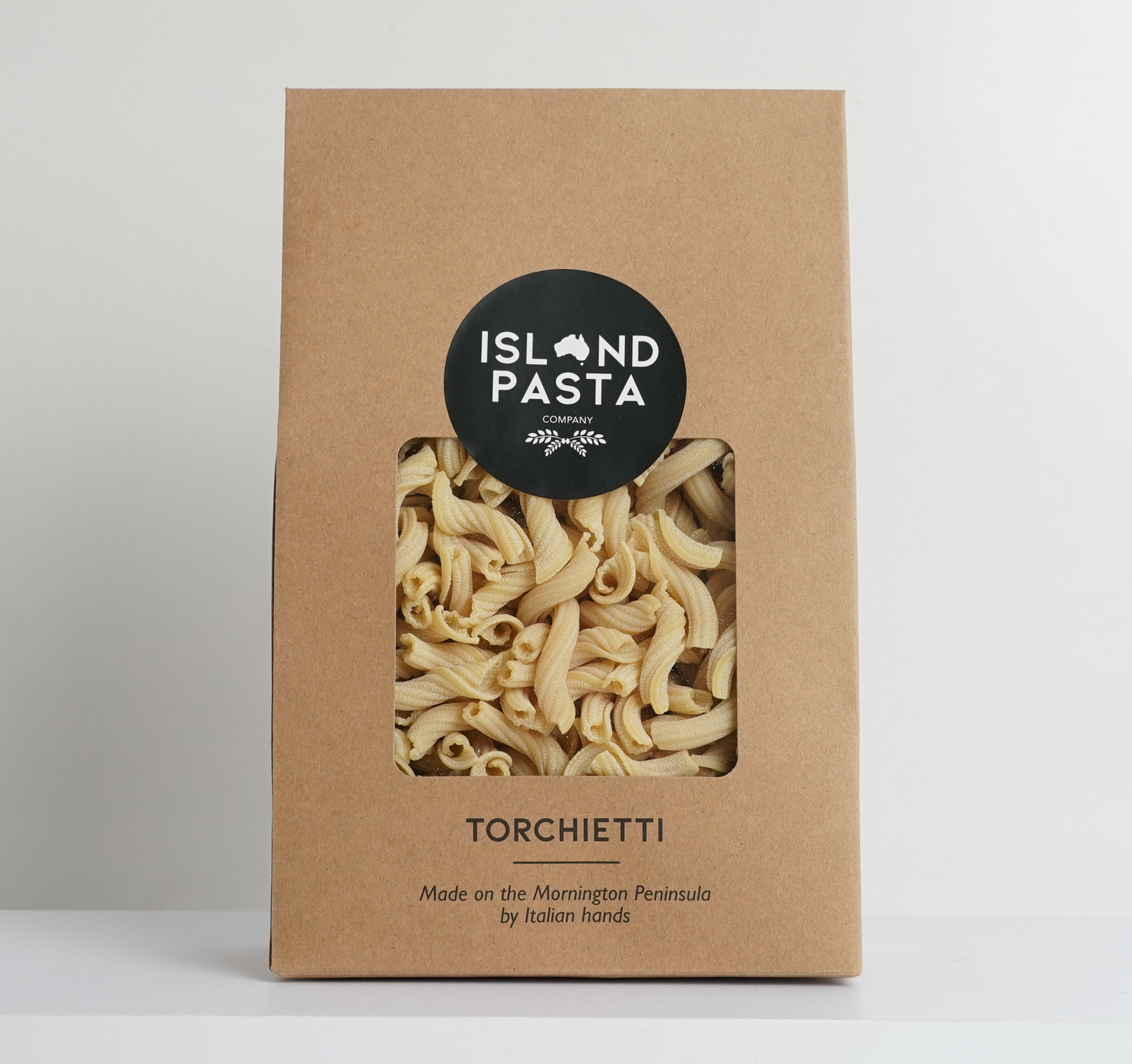 Our vegan Torchietti, “little torches,” is a bell-shaped pasta and most often paired with bolognese or sausage sauces. Due to its shape of the pasta, Torchietti holds the sauce extremely well. Our pasta is made with Australian-sourced durum wheat semolina flour. We slowly dry our pasta at lower temperatures, which allows us to maintain all nutritional benefits, the colour of the grain and the fragrance of the flour. This is what makes our pasta so easy to digest.