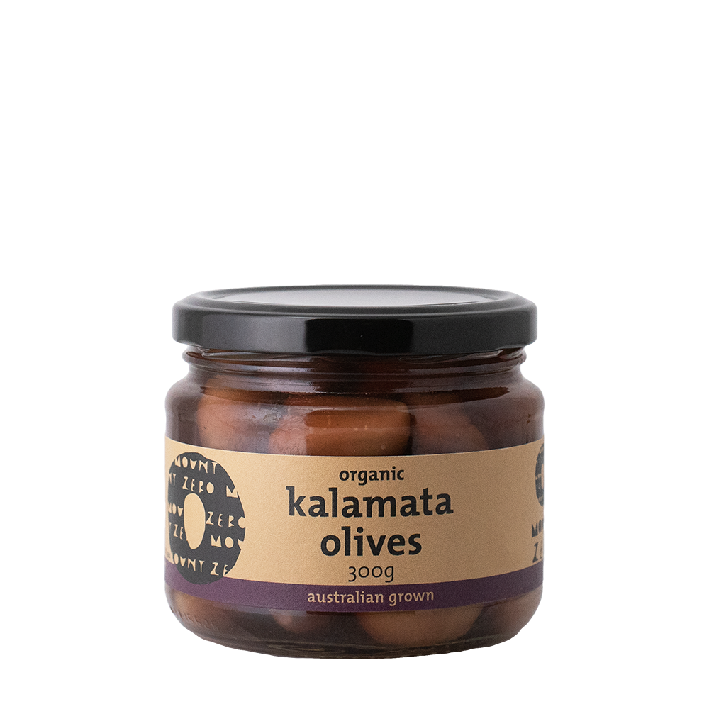 Mount Zero Organic Kalamata olives are medium/large in size. They have a firm flesh, complex olive flavour and finish with a delicious bitterness. Kalamata olives are the classic table olive variety and are also fantastic in salads. These olives are hand-picked and naturally brine cured, which provides for the variation in colour and a flavour that can only come from time consuming natural fermentation.