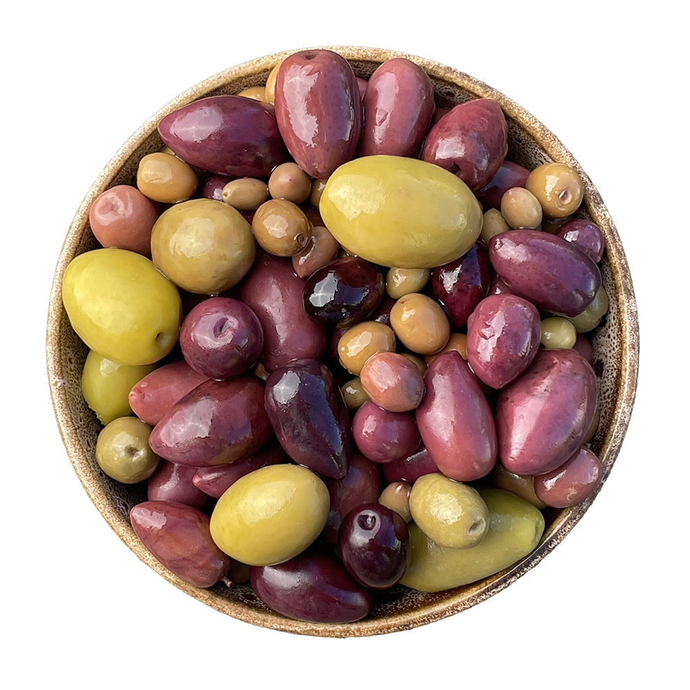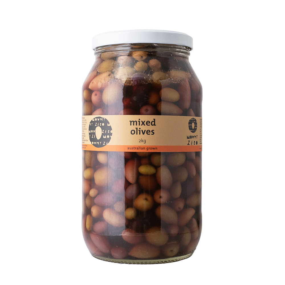 A mix of all of our Australian-grown olives including Blonde Kalamata, Manzanilla, Black Kalamata, Arbequina and Leccino olives. The variation in size, shape, colour and flavour within this mix presents beautifully and offers something for everyone. Fantastic table eating option and also for marinating & presenting with cornichons & caper berries.