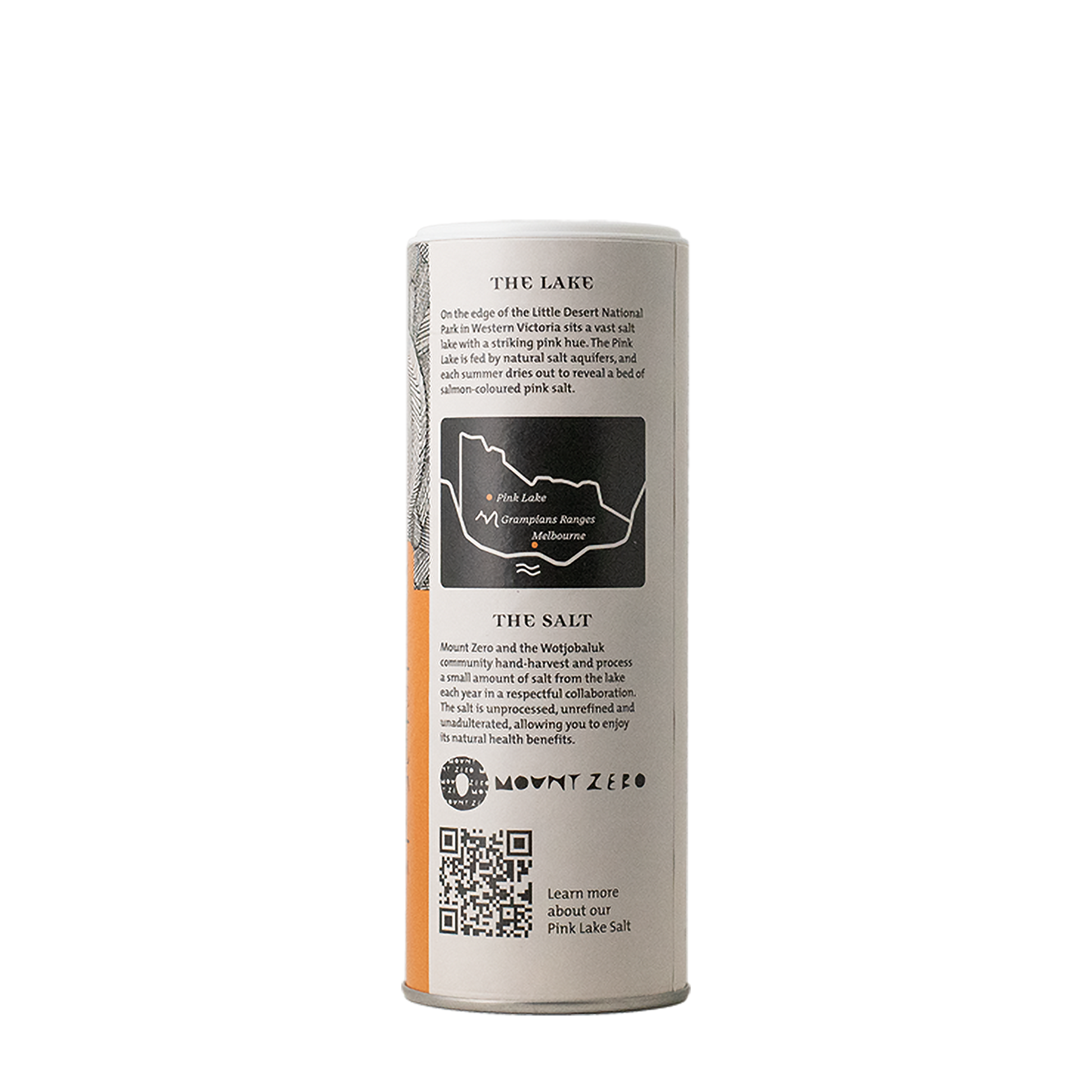 Our signature Pink Lake Salt, milled to a fine consistency and housed in a convenient, 100% recyclable shaker.